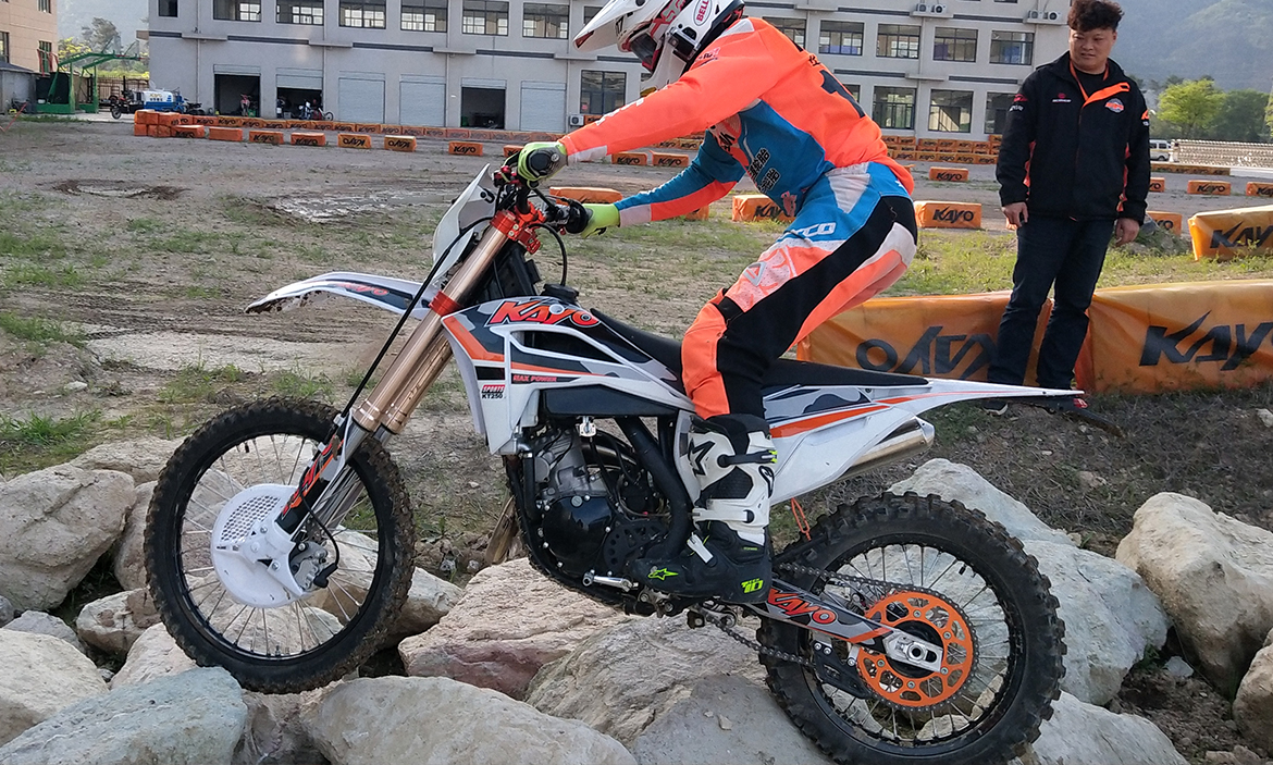 2021款KT250針對(duì)國(guó)內(nèi)日常林道穿越及林道比賽設(shè)計(jì),車架采用K6R同款特種材質(zhì),重量輕、強(qiáng)度大;搭載最新款兩沖程發(fā)動(dòng)機(jī),動(dòng)力更加充沛,質(zhì)量更加可靠;匹配尼比38口徑化油器,相對(duì)于同級(jí)別產(chǎn)品相比,動(dòng)力輸出更加暴躁;標(biāo)配CNC360度防摔離合把、剎車把、7系競(jìng)技鋁圈、競(jìng)技剎車、DID鏈條等專業(yè)競(jìng)技車配置,滿足日常林道穿越及林道比賽使用。