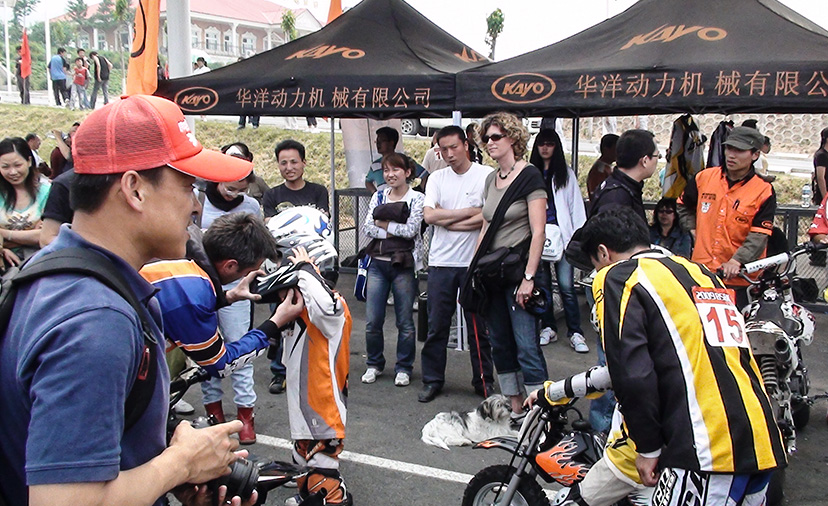 2008年,隨著華洋賽車的知名度的提高,華洋賽車開始與中國摩協(xié)達(dá)成戰(zhàn)略合作。華洋賽車其他車型也隨之陸續(xù)被中國摩協(xié)指定為全國越野錦標(biāo)賽競賽用車。KMB車型也在2009年全錦賽賽場的體驗活動中與國內(nèi)愛好者見面,一見面就帶來了不小的轟動。看看當(dāng)時的熱鬧場面,大家對華洋賽車的KMB產(chǎn)品無論大人小孩都是愛不釋手。