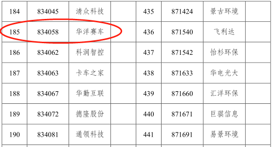 華洋賽車:序號(hào)185,證券代號(hào):834058(以上為部分入選企業(yè) )